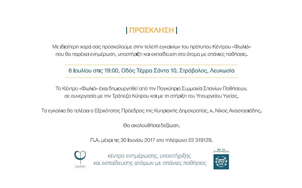 6 Ιουλίου 2017 – Εγκαίνια του πρότυπου Κέντρου «Φωλιά» – Παρέχει Ενημέρωση, Υποστήριξη, Εκπαίδευση σε άτομα με Σπάνιες Παθήσεις