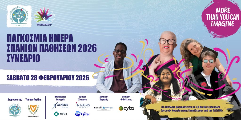 Η Παγκύπρια Συμμαχία Σπάνιων Παθήσεων (ΠαΣΣΠ) διοργανώνει το ετήσιο της συνέδριο στα πλαίσια της Παγκόσμιας Ημέρας Σπάνιων Παθήσεων 2026, το Σάββατο 28 Φεβρουαρίου στο Αμφιθέατρο της CYTA, μεταξύ των ωρών 08:45 – 13:00.